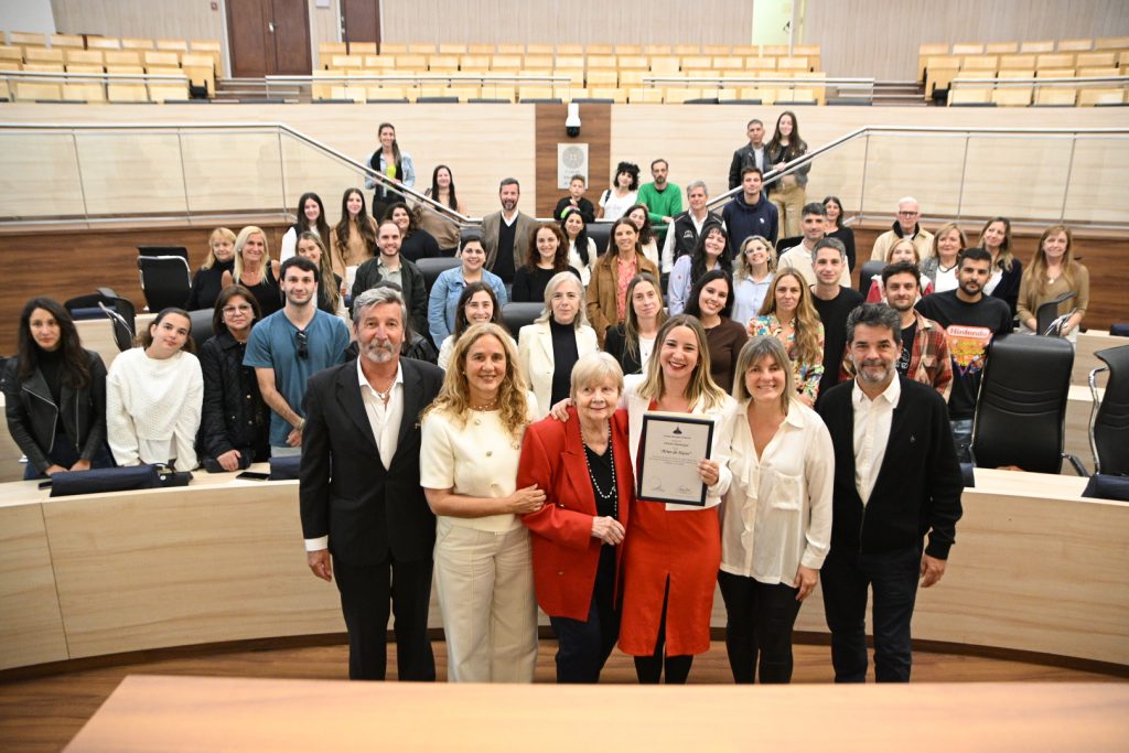 Tras la lectura del decreto por el que se declara al libro de interés municipal, la concejala Irizar le entregó la copia del texto legal y el diploma enmarcado.