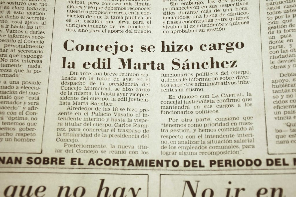 Marta Sánchez se inscribe en ese marco como una de las mujeres que ejercieron funciones de conducción en el Concejo, en un tiempo donde la participación femenina en cargos legislativos locales era aún limitada.