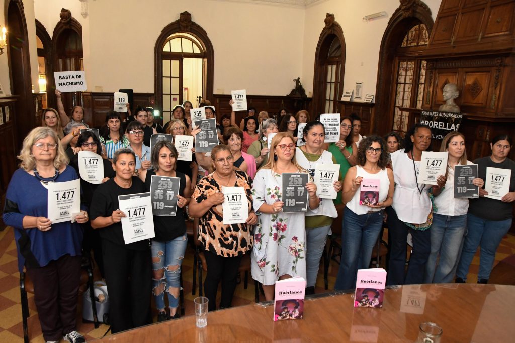 El libro “Huérfanos, atravesados por el femicidio” de Sonia Almada fue presentado en la tarde de ayer, lunes 1° de diciembre, en un acto efectuado en el salón “Puerto Argentino” del Concejo Municipal, con carteles de Familiares Atravesados por el Femicidio, con números sobre huérfanos en los últimos años o “Basta de machismo”, “No aparecemos muertas, nos matan”.